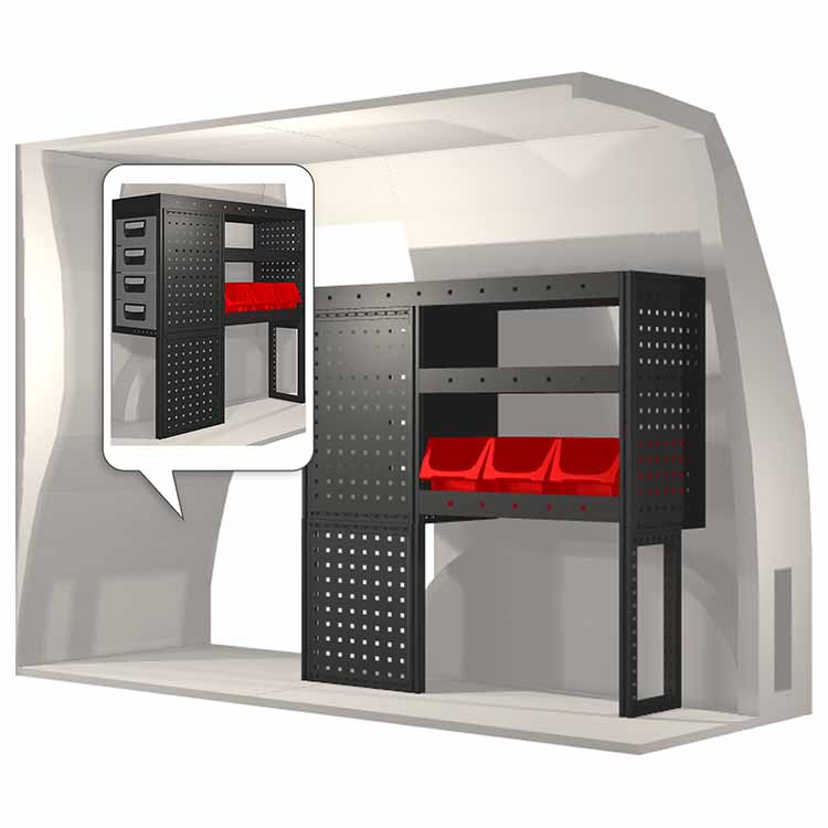 Innredningene er konstruert slik at de passer inn i bilene og tar hensyn til funksjon og sikkerhet. De er utviklet for profesjonelt bruk og fleksibiliteten gjør at den kan tilpasses alle yrkesgrupper. Hyller er utstyrt med gummimatter og skuffene har skumplastinnlegg. Monteringsmateriell er inkludert.