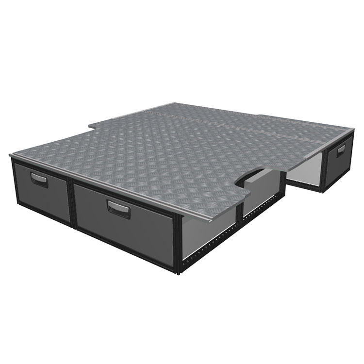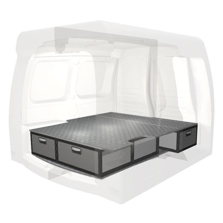 Kitet är designat för installation ovanpå ett Modul-Floor, där det undre golvets skenor nyttjas för en icke-förstörande installation. Dubbelgolvets skenor möjliggör enkelt montage av fordonsinredning och kantlister bidrar till en snygg finish.