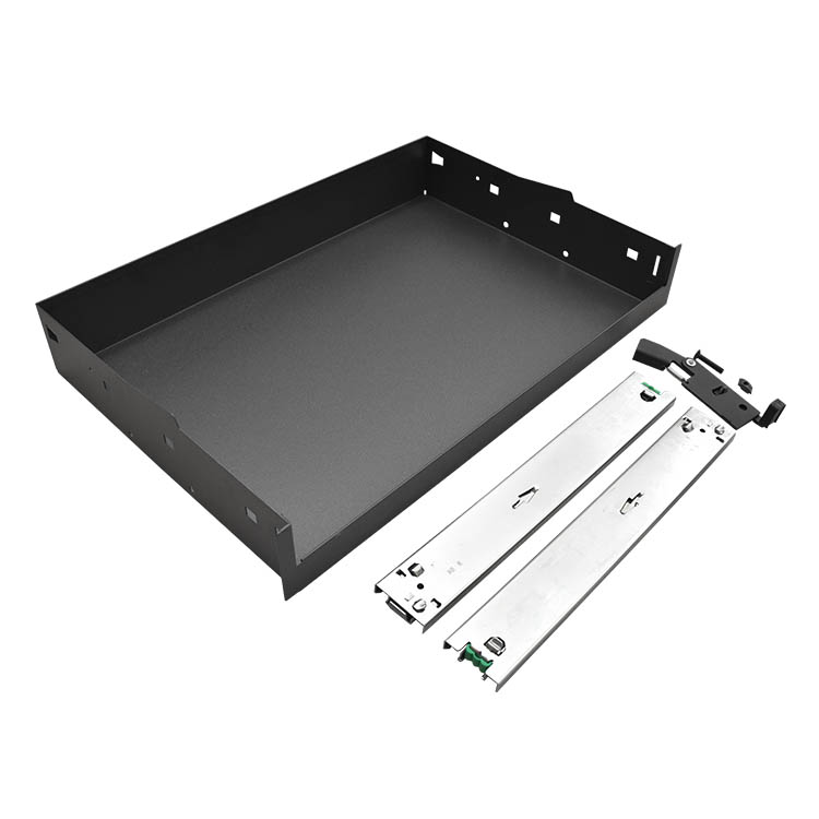 Uttrekkbare hylle – utstyrt med kulelagerruller – for sikker oppbevaring av Multi-Box. Hyllen er montert mellom hyllestøttene og gir enkel tilgang til Multi-Box.