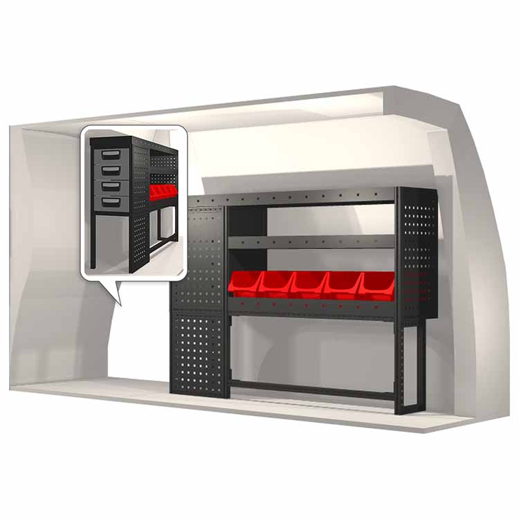 Innredningene er konstruert slik at de passer inn i bilene og tar hensyn til funksjon og sikkerhet. De er utviklet for profesjonelt bruk og fleksibiliteten gjør at den kan tilpasses alle yrkesgrupper. Hyller er utstyrt med gummimatter og skuffene har skumplastinnlegg. Monteringsmateriell er inkludert.