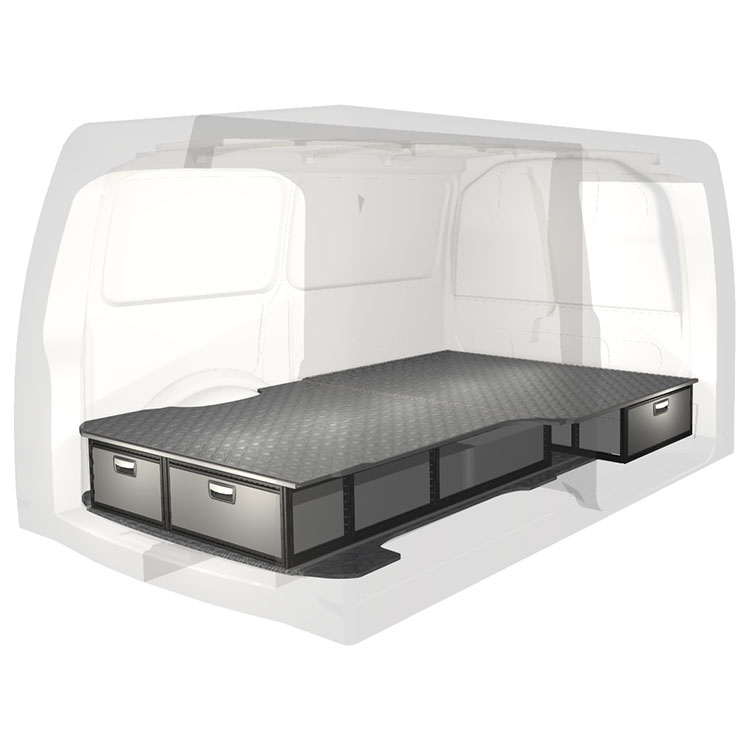 Kitet är designat för installation ovanpå ett Modul-Floor, där det undre golvets skenor nyttjas för en icke-förstörande installation. Dubbelgolvets skenor möjliggör enkelt montage av fordonsinredning och kantlister bidrar till en snygg finish.