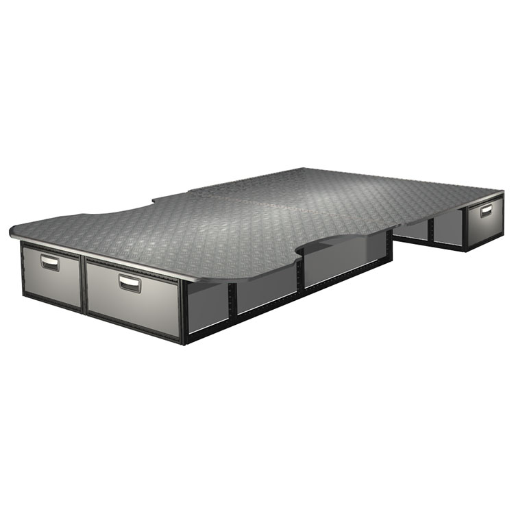 Kitet är designat för installation ovanpå ett Modul-Floor, där det undre golvets skenor nyttjas för en icke-förstörande installation. Dubbelgolvets skenor möjliggör enkelt montage av fordonsinredning och kantlister bidrar till en snygg finish.