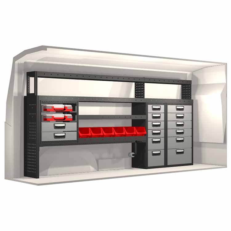Innredningene er konstruert slik at de passer inn i bilene og tar hensyn til funksjon og sikkerhet. De er utviklet for profesjonelt bruk og fleksibiliteten gjør at den kan tilpasses alle yrkesgrupper. Hyller er utstyrt med gummimatter og skuffene har skumplastinnlegg. Monteringsmateriell er inkludert.